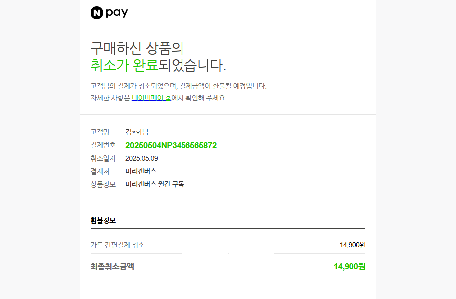 미리캔버스 환불이 되었어요! 미리캔버스 웹페이지에서 결제된지 일주일 이내 구독취소 하면된다는데..